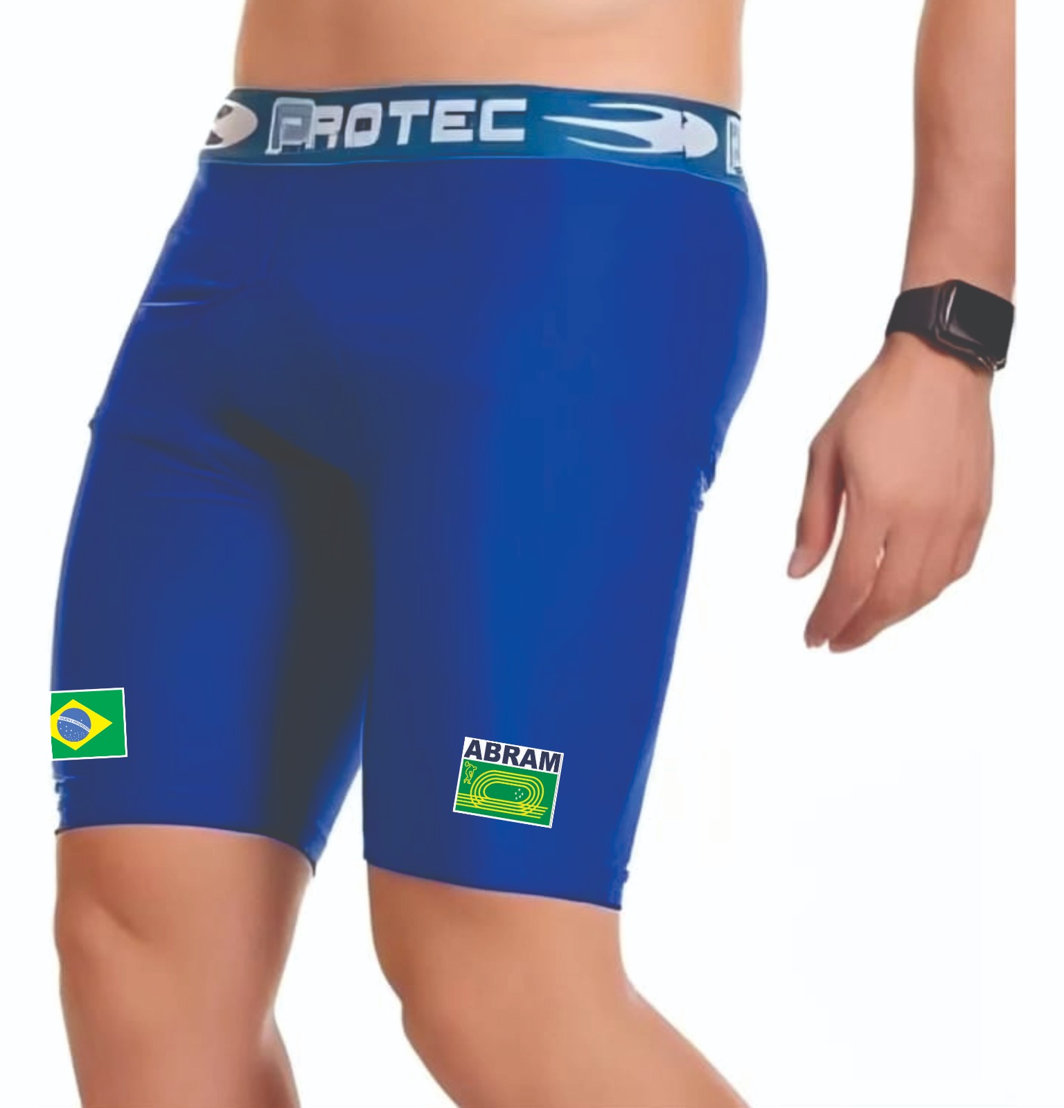 Bermuda térmica masculina do uniforme oficial dos atletas integrantes da Delegação Brasileira de Atletismo Master em competições internacionais, treinos entre outros.